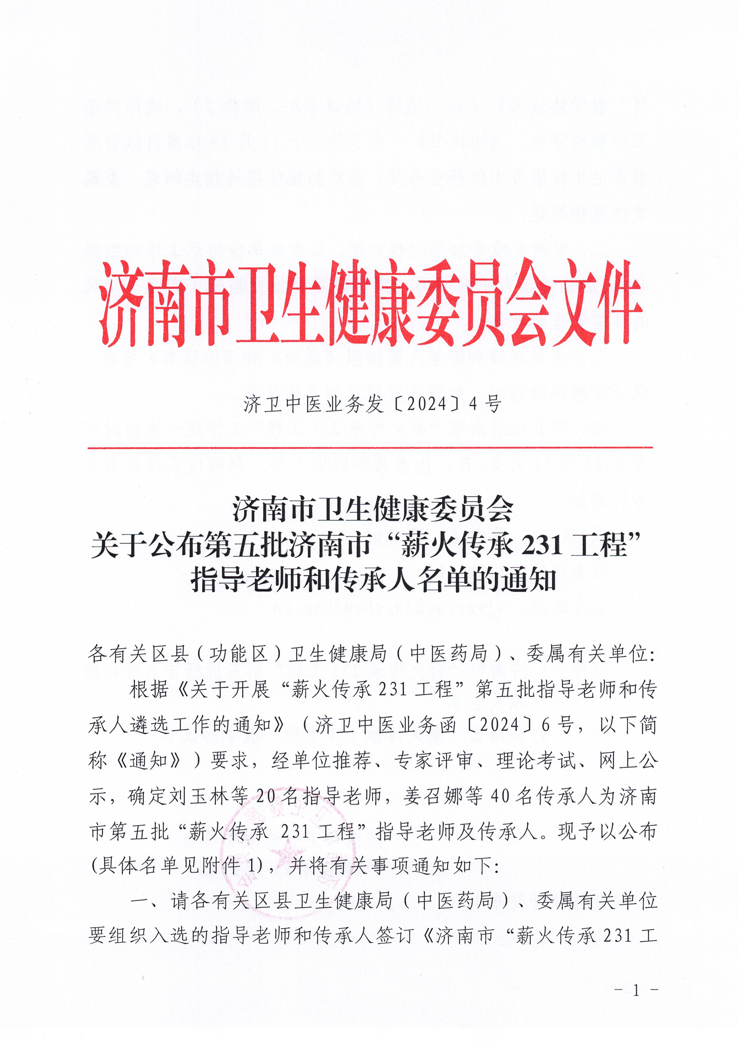 2024年11月13日,济南市卫生健康委公布了第五批济南市“薪火传承231工程”指导老师和传承人名单,济南机关中文av