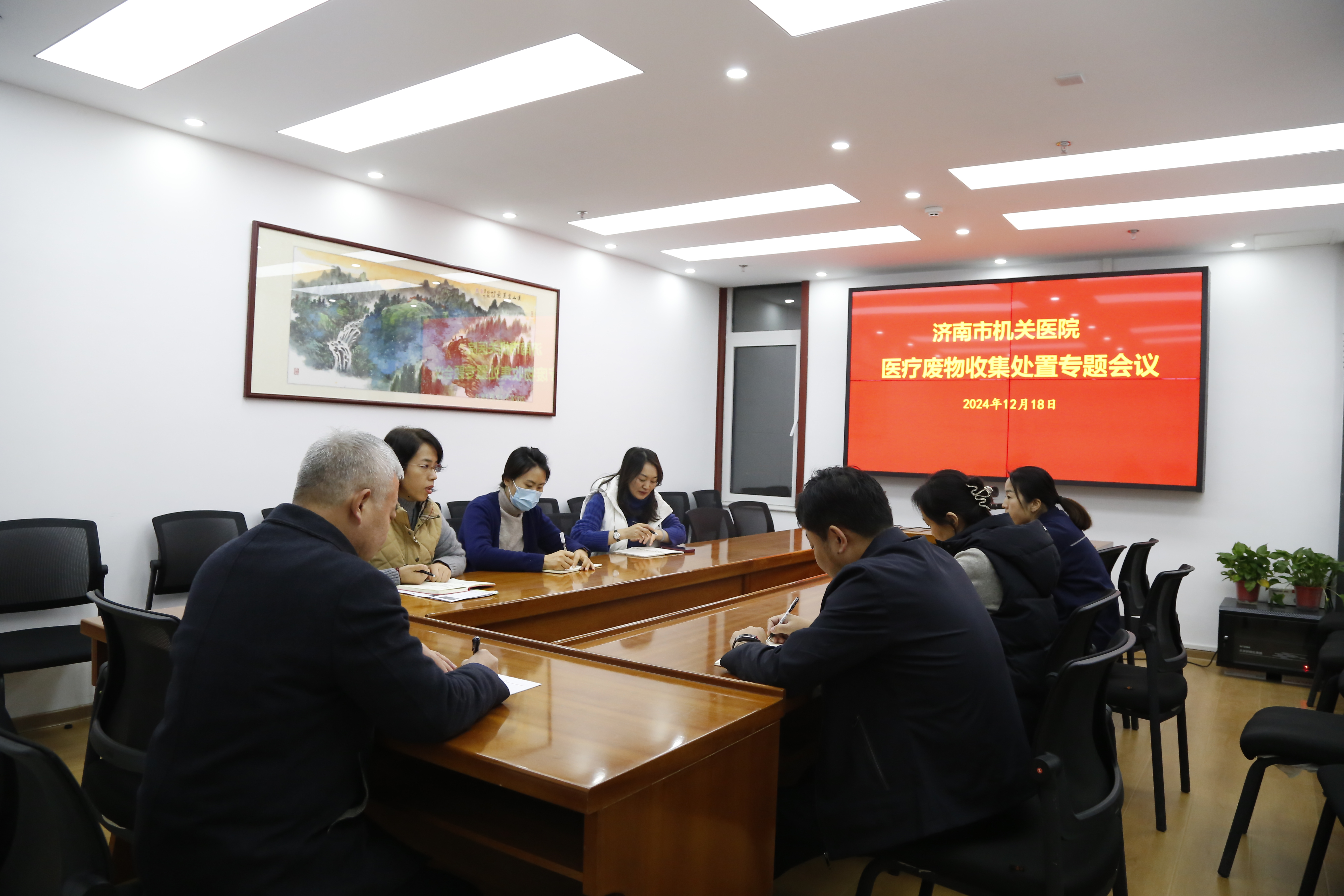 在济世楼412会议室召开医疗废物收集处置专题会议,院感科负责人主持会议,副院长渠鹏程、李茂利,以及物业公司、院务部等相关人员参加会议。