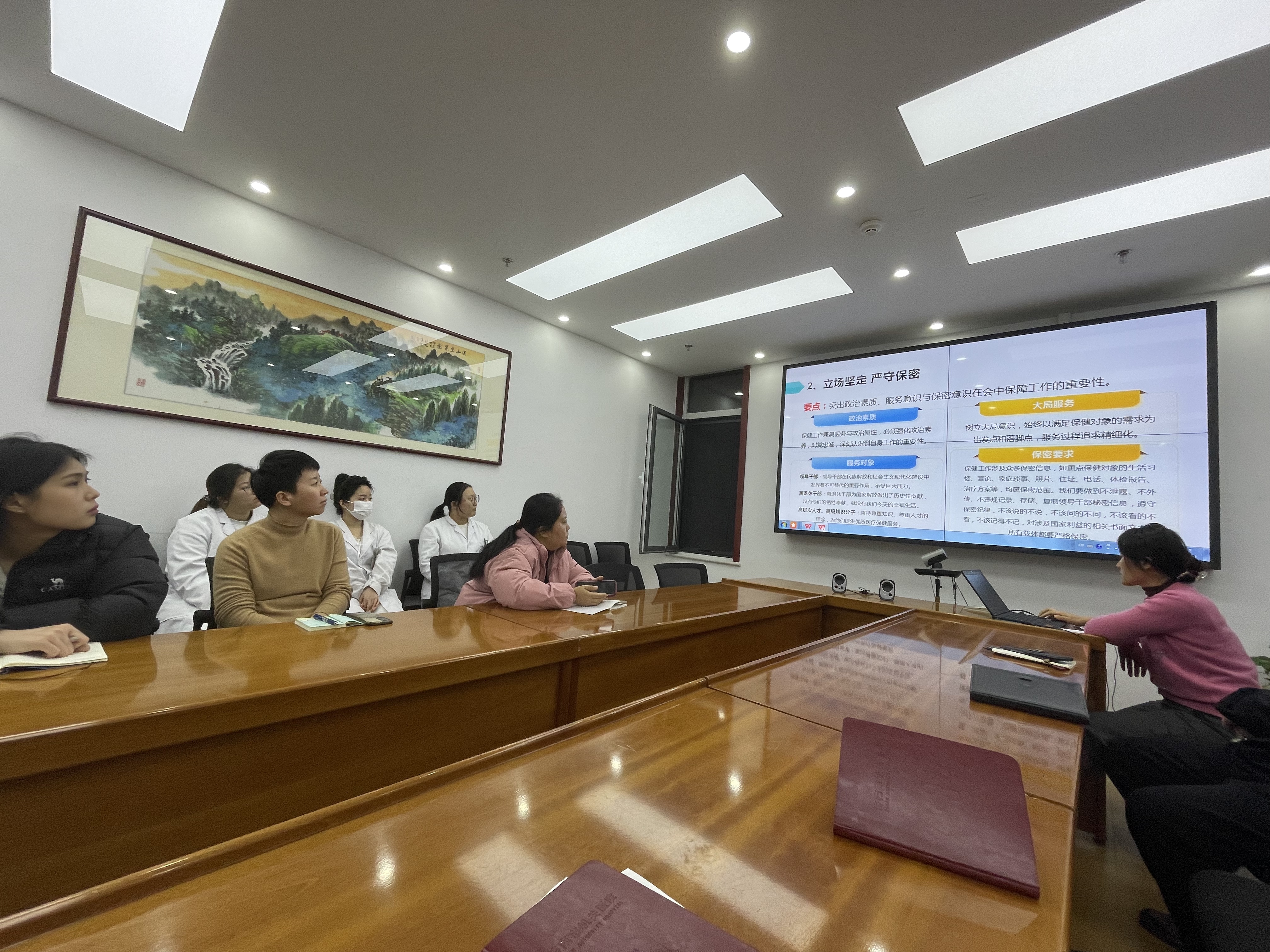 聚焦两会保障,在412会议室召开专题培训,党委书记崔奕东、副院长李茂利,以及两会医疗保障队全体人员参加会议,干部保健科主任张英华主持会议。