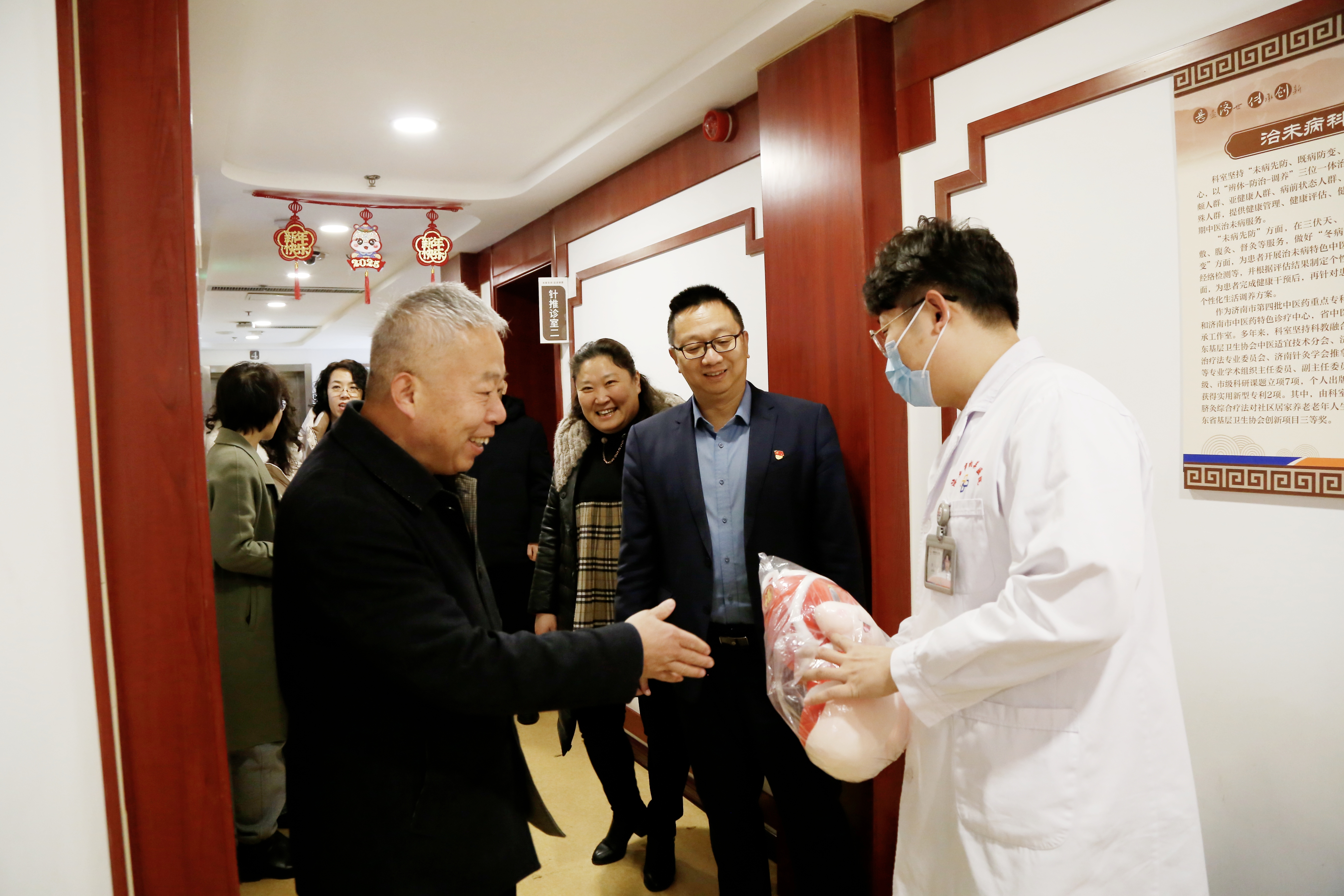中层干部走进临床一线,为坚守岗位的医护人员和住院患者送去了节日问候和蛇年吉祥物。