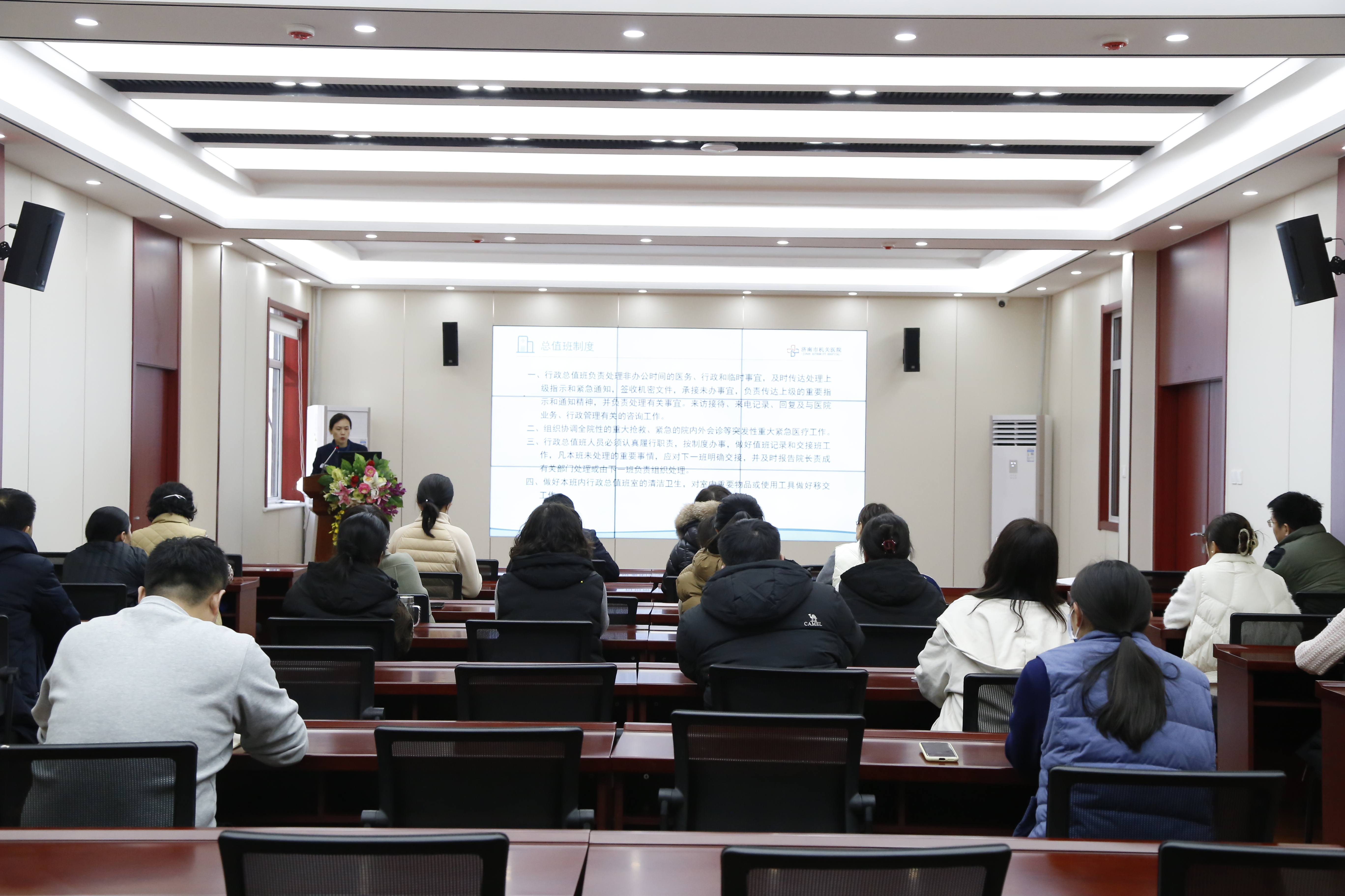 本次培训由院务部负责人主持,她首先介绍了行政总值班制度、工作流程以及应对各类突发事件的处理方法等,着重强调了在值班期间要严格遵守中文av