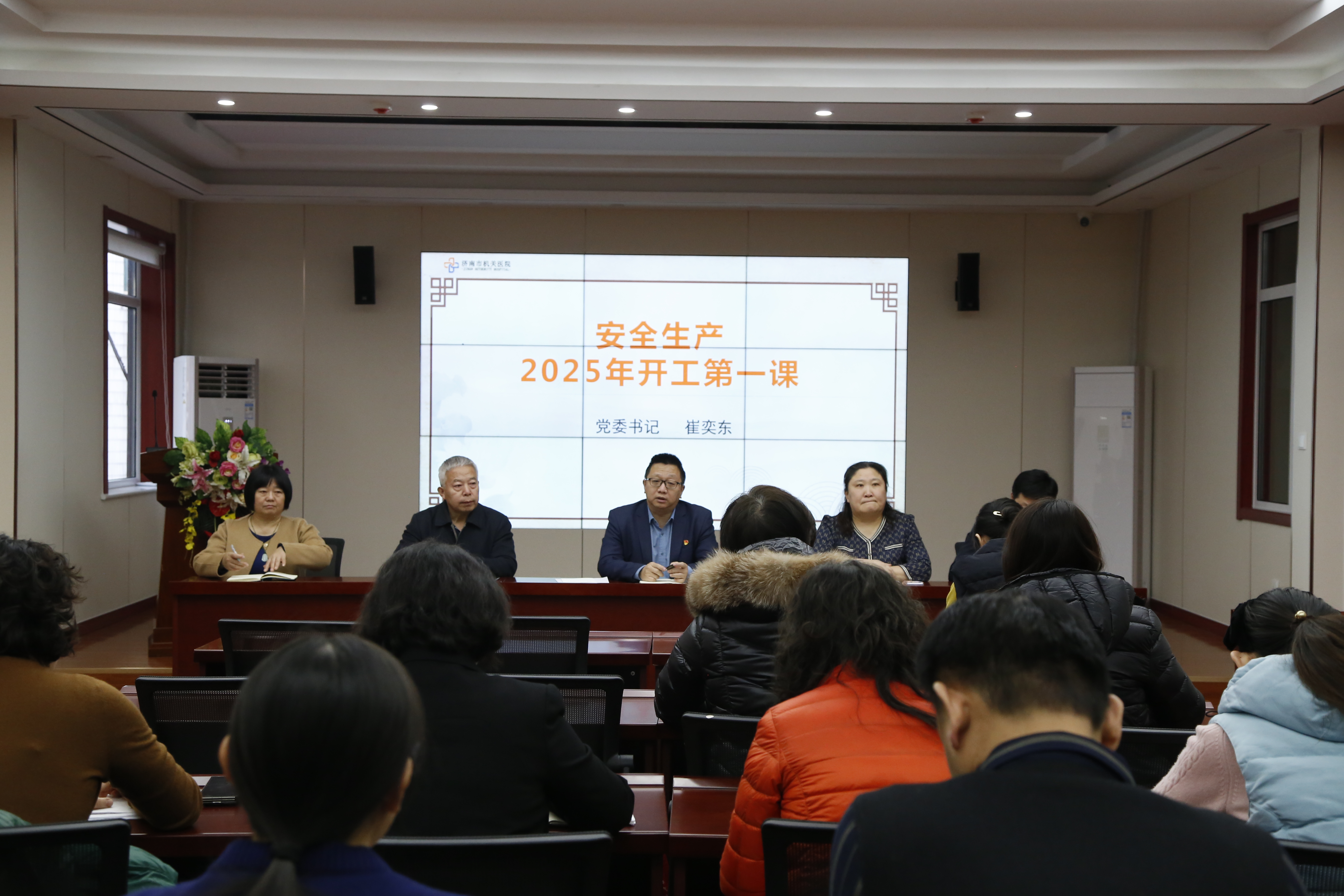 在五楼会议室召开安全生产“开工第一课”,院党委书记崔奕东担任主讲,中层及以上干部共32人现场参训。