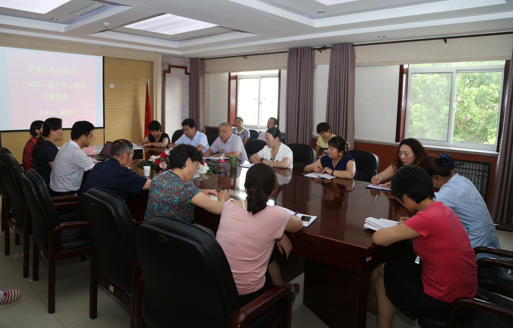 6月24日下午,市卫生计生委党委委员、副主任徐配印到去院作“两学一做”专题教育党课,院党支部书记杜文建主持,在职党员、部分退休党员及入党积极分子参加了学习。