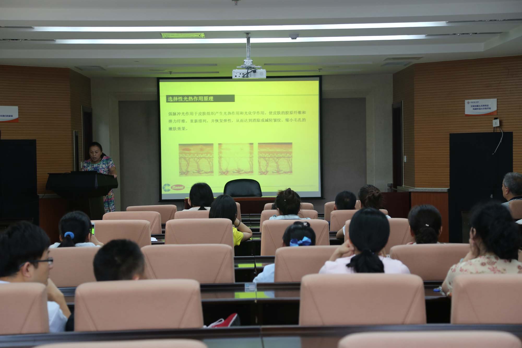 皮肤科先进的治疗设备以及每台仪器可以做的美容治疗项目,其中还向大家展示了每台仪器治疗前后的效果对比图,重点介绍了目前几项比较流行的美容项目。讲座内容丰富,图文并茂,生动形象,取得了很好的效果。激光美容技术已是当今社会发展的热门专业,随着人们对美的要求越来越高,市场需求也不断地扩大,激光美容也越发受到更多爱美人士的追捧。皮肤激光科是中文av的重点科室之一,多年来在中文av