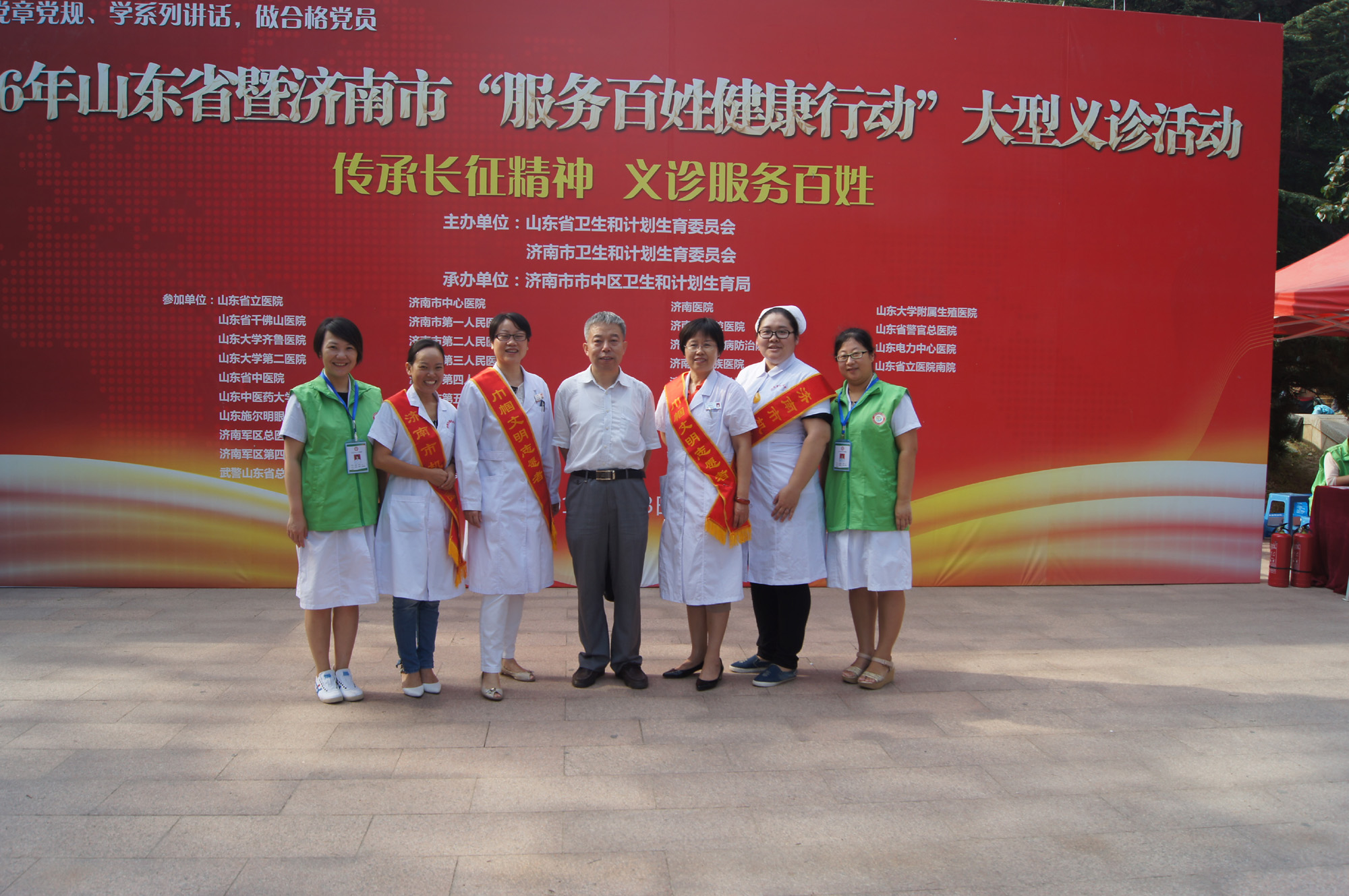 为进一步落实“两学一做”学习教育实践活动的要求,以实际行动纪念红军长征胜利80周年,市卫计委、市中医药管理局组织开展的2016年“服务百姓健康行动”大型义诊活动周启动。9月3日,中文av积极组织医学专家、青年志愿者8人在英雄山北广场开展了一天的义诊活动。