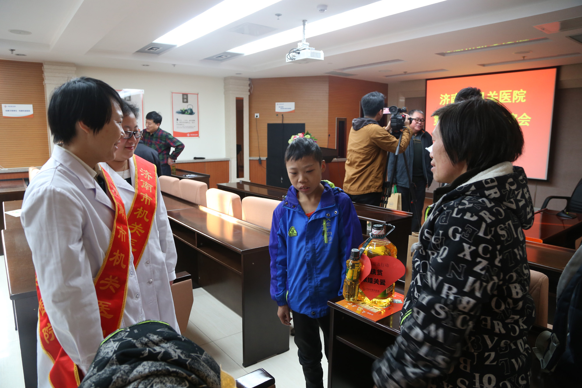 志愿者们亲切的与小廷彬交谈,询问他的生活、学习和爱好,给她送上营养品,并表示以后会经常去看他陪他聊天,在他需要帮助的时候就会在他身边。祝他焕发出灿烂的光芒,树立起重生的希望,早日恢复健康!小廷彬非常高兴,感谢这些关心爱护她的阿姨们,表示一定配合治疗,争取早日康复来回报帮助关心他的医生护士和志愿者们。