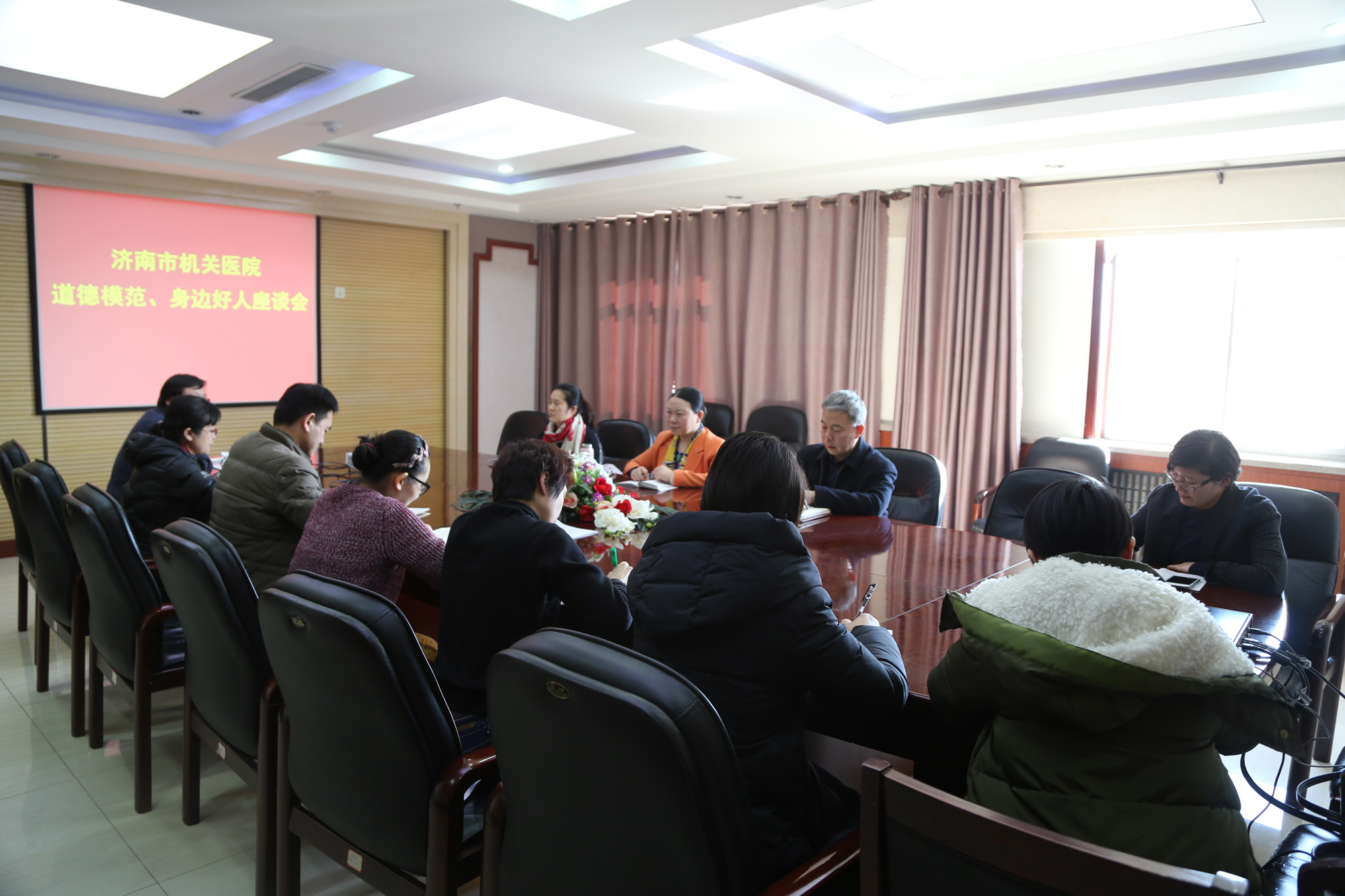 1月20日下午1点,中文av组织院中层干部和工会委员会成员召开了道德模范、身边好人座谈会。济南市道德模范杜文建同志、济南市敬业奉献好人渠鹏程和孙雨菡同志参加了本次座谈会。
