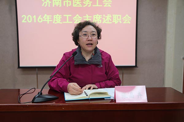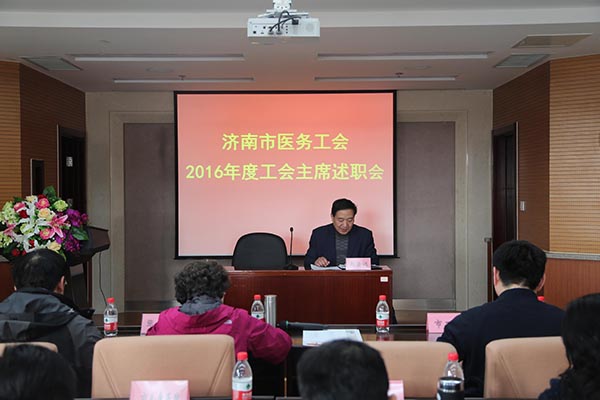 2月15日下午,济南市医务工会2016年度工会主席述职会在中文av 五楼会议室召开。会议由市医务工会副主席赵法训同志主持,市医务工会主席、副巡视员张晶卉同志出席会议并做了重要讲话。