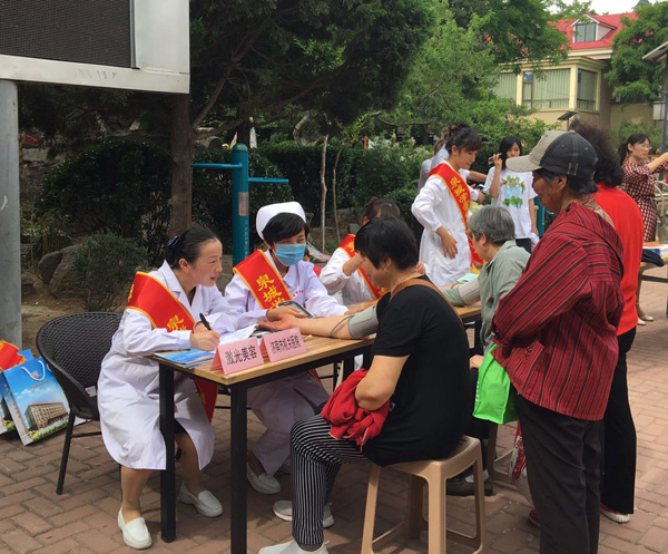 5月11日上午,在市卫计委的组织领导下,机关中文av 选派4名医护人员参加了在燕山小区举办的以“创建文明城,机关当先锋”为主题的义诊活动。