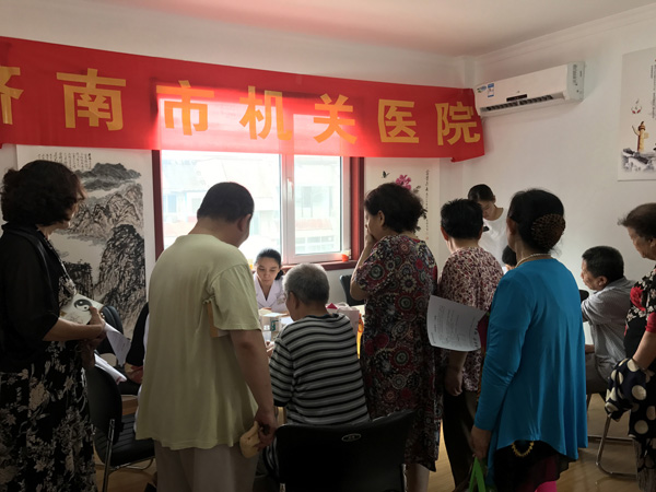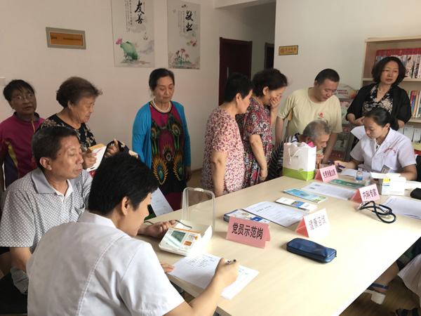 的医务工作者们为社区居民开展了义诊和健康咨询活动。通过为居民免费量血压、测血糖、现场为居民诊断以及用药指导等工作,并为居民发放创城宣传材料,号召广大居民投身“创城”工作,发挥人人都是“创城宣传员”、个个都是“创城参与者”的作用,为“创建济南文明城市”助力,为党的生日献礼! (李盈)