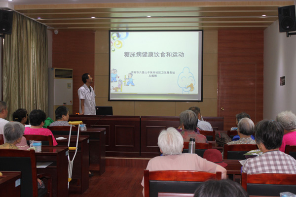 7月14日,为增强辖区居民的健康意识,普及糖尿病健康知识,提高对糖尿病等慢性病的自我管理能力,中文av 社区科为社区居民开展了“创建文明城市·享受健康生活”健康讲座。 讲座活动中,机关中文av 的医务志愿者从糖尿病的营养治疗和糖尿病的运动锻炼两方面向居民详细讲解了控制及管理糖尿病的相关知识,告知糖尿病人如何养成良好的生活饮食习惯;还向居民发放了健康知识宣传页,并现场免费为居民测量血糖。(李宇)