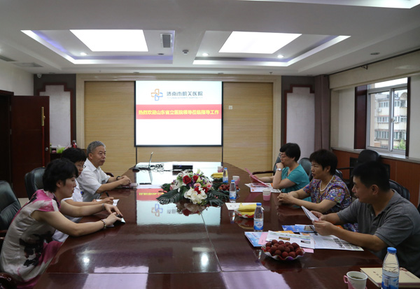 7月18日上午,山东省立中文av 外事办宋开兰处长、门诊部李振香主任和远程办张喜雨主任等一行4人莅临机关中文av 指导工作,机关中文av 副院长渠鹏程等人陪同。 宋开兰处长一行对国医堂、护理站、透析科、查体中心等科室进行实地考察。同时听取了渠副院长对中文av 整体情况、发展规划的工作汇报。宋开兰处长对机关中文av 的就医环境、服务水平以及国医堂建设给予了充分肯定,双方还就远程交流、双向转诊、专家预约等方面进行了深入讨论。(吕娜)
