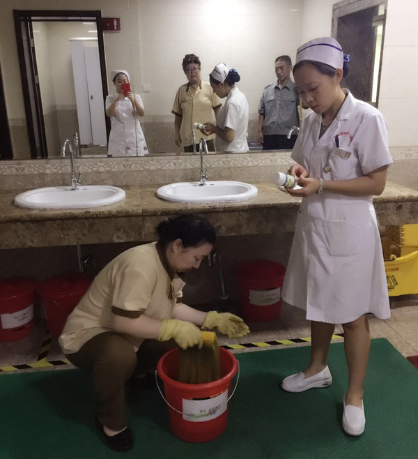 结合济南市创建全国文明城市工作要求,对保洁人员进行院内控制感染知识培训并进行了现场督导。