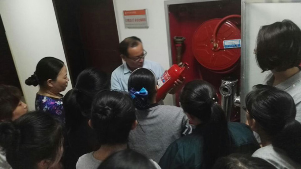 消防安全工作的重要性,重点讲解了消防安全隐患、初期火灾的扑救、火灾报警、火场应急疏散、火场中如何逃生等内容,并现场演示了消防栓、灭火器的使用方法。
