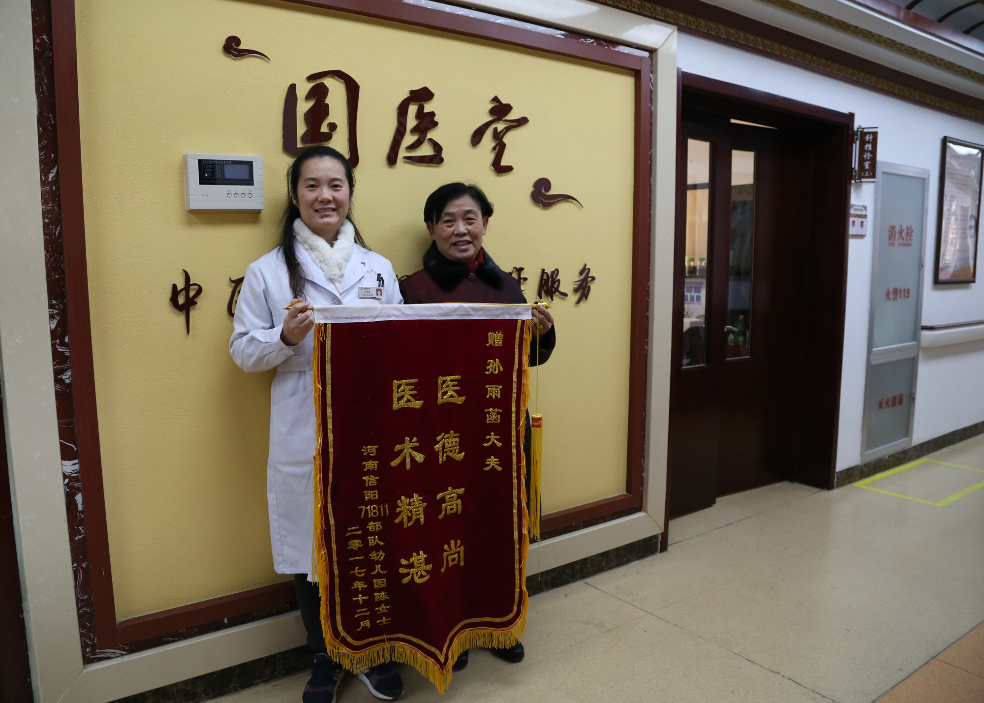 国医堂,向中医科孙雨菡主任赠送了一面写有“医德高尚、医术精湛”的锦旗,表达自己的感激之情。