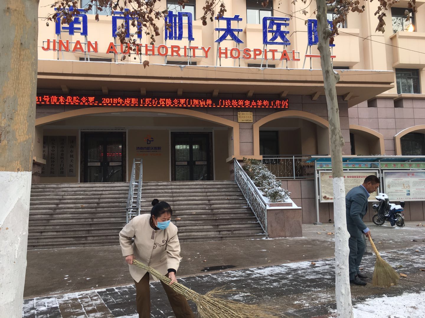 1月27日,一场大雪降临济南,给居民出行带来不便。为防止道路结冰,方便患者就医,机关中文av 领导高度重视,按照市政府办公厅“关于做好冰雪和强降温天气防范应对工作的紧急通知”和市卫计委相关要求,于1月28日清晨迅速组织人员对中文av 门前三包区及周边的积雪进行了清扫,有效保障了患者就医安全,方便居民出行。(李茂利)