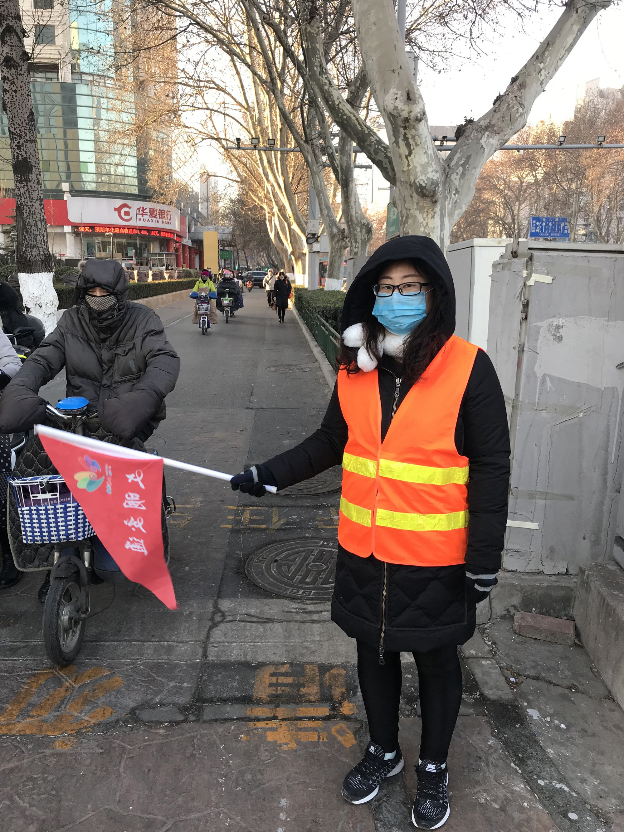 当日最低温度达到零下九度,在寒冷的北风中,志愿者们不停地吸鼻子,冻得手和脸通红,但大家头戴黄帽,身着黄马甲,手持文明引导旗,冒着严寒,不断以规范、标准、文明的引导方式劝阻乱穿马路、闯红灯等不文明行为,协助老弱病残特殊人群安全过马路。志愿者们热情的服务态度和奉献精神获得了过往市民的一致好评。