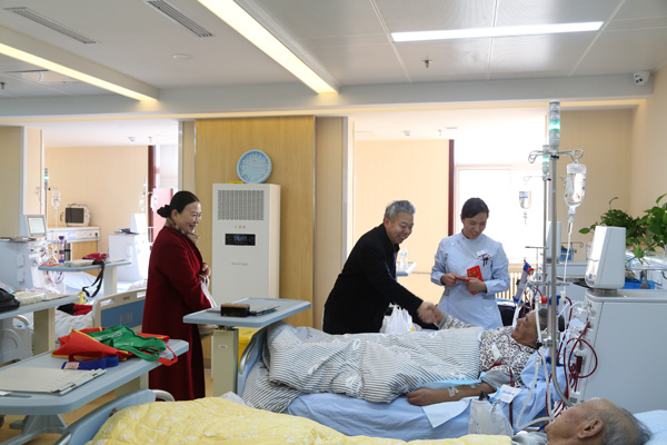 院长杜文建和副院长渠鹏程带领青工委人员看望了节日期间仍坚守在临床一线的全体值班人员、血液透析患者及保安人员,为他们送去了热气腾腾的饺子和亲切的问候与祝福,同时,向值班人员详细询问了药品、设备、人员安排等各项节日期间的工作准备情况。