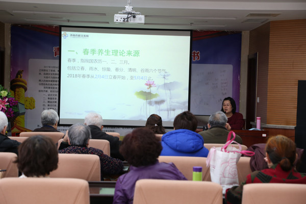 3月9日上午,中文av 2018年健康宣教活动第一课开始了!由中医科精心准备的“春季养生与年龄养生”在现场听众们的期待中准时开讲。 中医科主任在既往中医四季养生系列讲座的基础上,增添了新的专题——年龄养生,以《内经·素问·上古天真论篇第一》中男女年龄节律为主线,女子按七岁为一轮,男子按八岁为一轮,结合生活养生和临床常见问题,讲解年龄养生规律和方法,内容新鲜有趣,受到广大听众的热烈欢迎。(孙雨菡)
