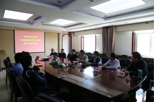 召开新门诊楼房屋改造工程项目初步设计评审会。分别邀请了山东省建筑科学研究院、济南四建集团有限责任公司、山东万德福装饰有限公司、山东省城建设计院、山东大学五位总工程师技术专家现场给予了指导。五位专家分别根据相关人员的汇报,对项目改造进行了认真讨论和审议,从安全性、实用性、有效性、风险防范等方面进行了全方位的系统评估,并给出评审意见。(李茂利)