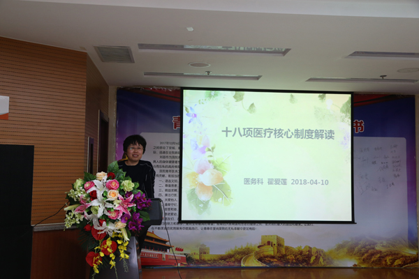 的各项主要规章制度,并强调了医疗生产安全。由医务科主任随后为大家强调了十八项医疗核心制度的理解与执行。讲台上,老师们讲地结合实际、深入浅出,讲台下,新职工们听的全神贯注。到了互动阶段,整个会议室的气氛瞬间活跃起来。新职工还自告奋勇,上台详细、生动地讲解了干粉灭火器的使用方法,赢得了在座热烈的掌声。两堂课下来,每个人都收获满满。