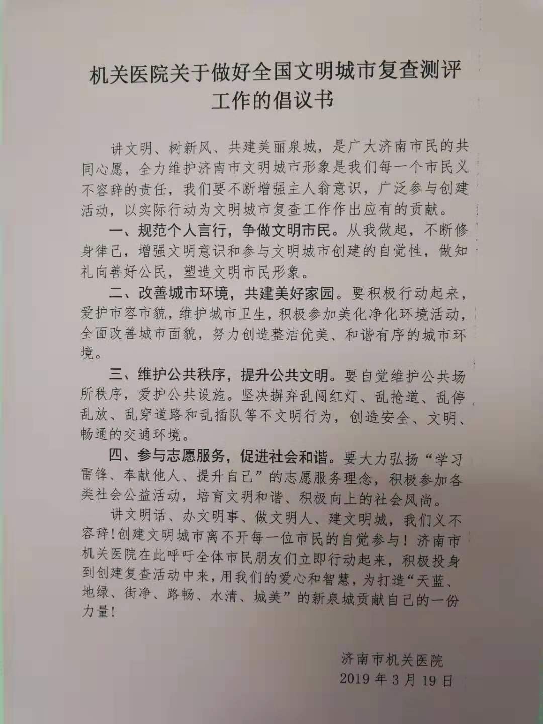 在此呼吁全体市民朋友们立即行动起来,积极投身到创建复查活动中来,用我们的爱心和智慧,为打造“天蓝、地绿、街净、路畅、水清、城美”的新泉城贡献自己的一份力量!
