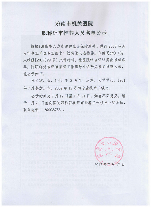 职称评审推荐人员名单公示