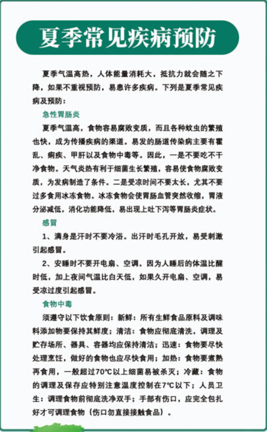 一图读懂——夏季常见疾病预防
