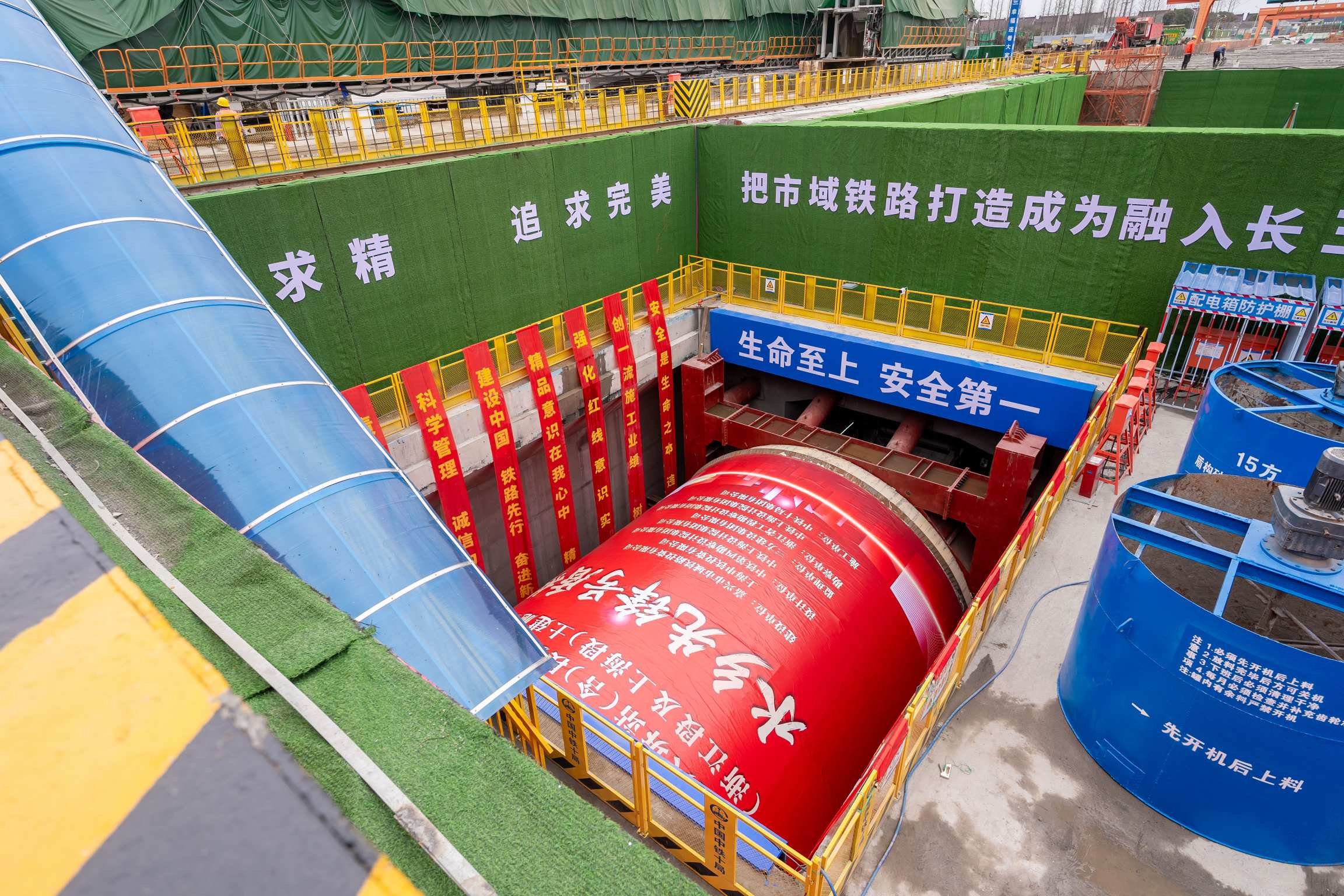 3月4日,h片 旗下中铁十局“水乡先锋号”盾构机在水乡旅游线城际铁路浙沪省界明挖段至水乡客厅站区间右线始发。