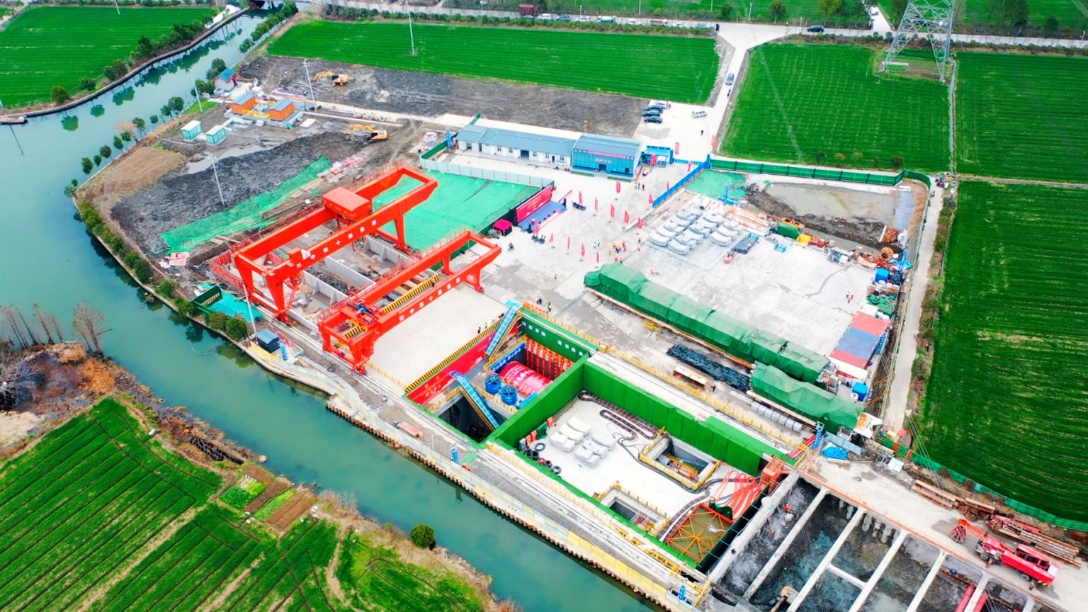盾构始发井位于浙江省嘉善县西塘镇境内。此次掘进区间全长4154.94米,其中浙江段长2091.28米、上海段长2063.66米。“水乡先锋号”盾构机整机总长约120米,开挖直径9.305米,总重达952吨,搭载智能掘进、土仓可视化等核心技术,可实现隧道开挖与衬砌安装一体化作业。