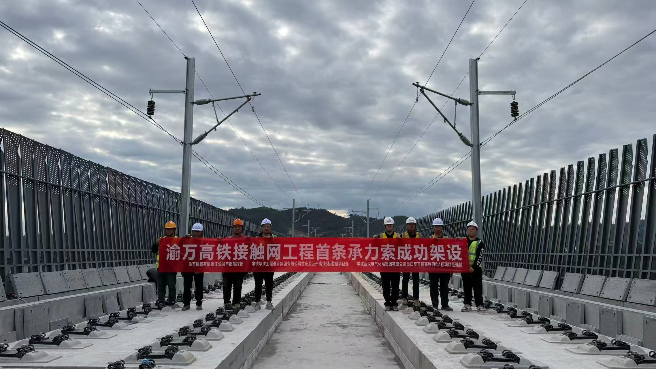 承力索是电力牵引供电系统的核心组成部分,承担着悬挂接触线、保障列车稳定受流的关键作用。此次完成架设的承力索位于蔡家沟双线特大桥上,架设总长度约2.3条公里。