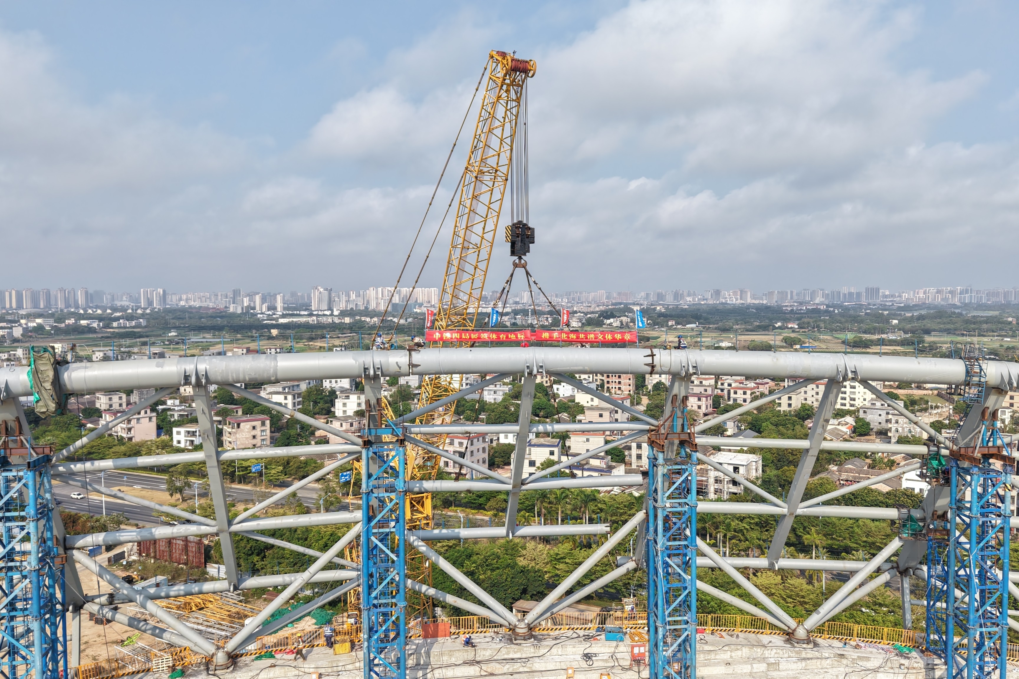 中国东盟(北海)体育实训基地体育场钢屋盖结构合龙