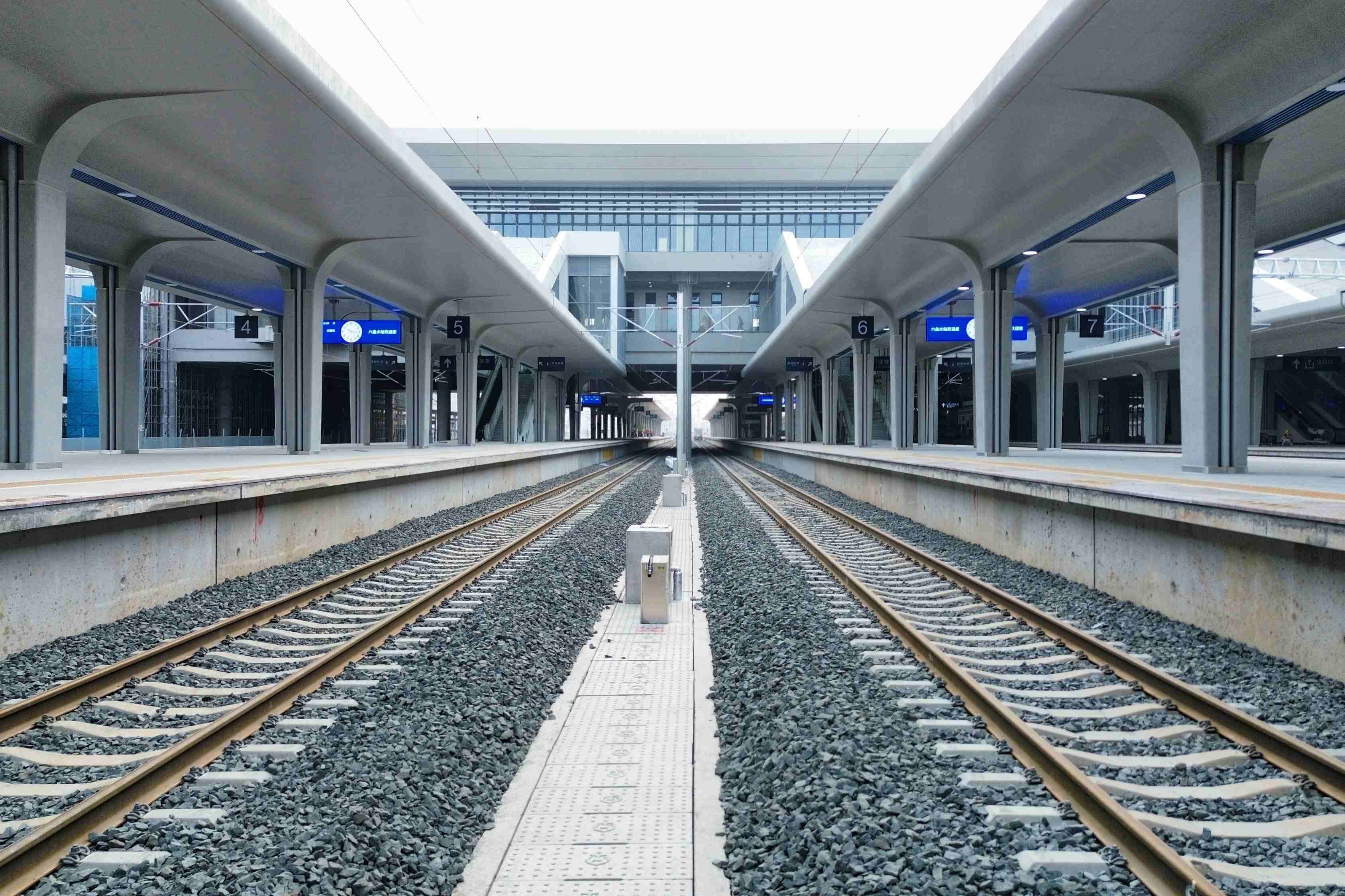 建设期间,中铁八局推行“分区作业、交叉推进”施工模式,提升施工空间利用率;轨道施工应用闪光焊焊接技术,提升轨道焊缝成型质量与施工效率;电务施工采用“分阶段插入试验+集中倒替开通”模式,提前安全完成信号倒替施工。中铁电气化局采用计算机控制+液压同步整体提升技术进行钢结构网架施工,应用三维数字化建模、BIM预拼装及模块化安装、激光扫描校核技术,先后攻克岩溶地质桩基、大跨度钢结构网架整体提升、室内外复杂曲面造型等技术难题。