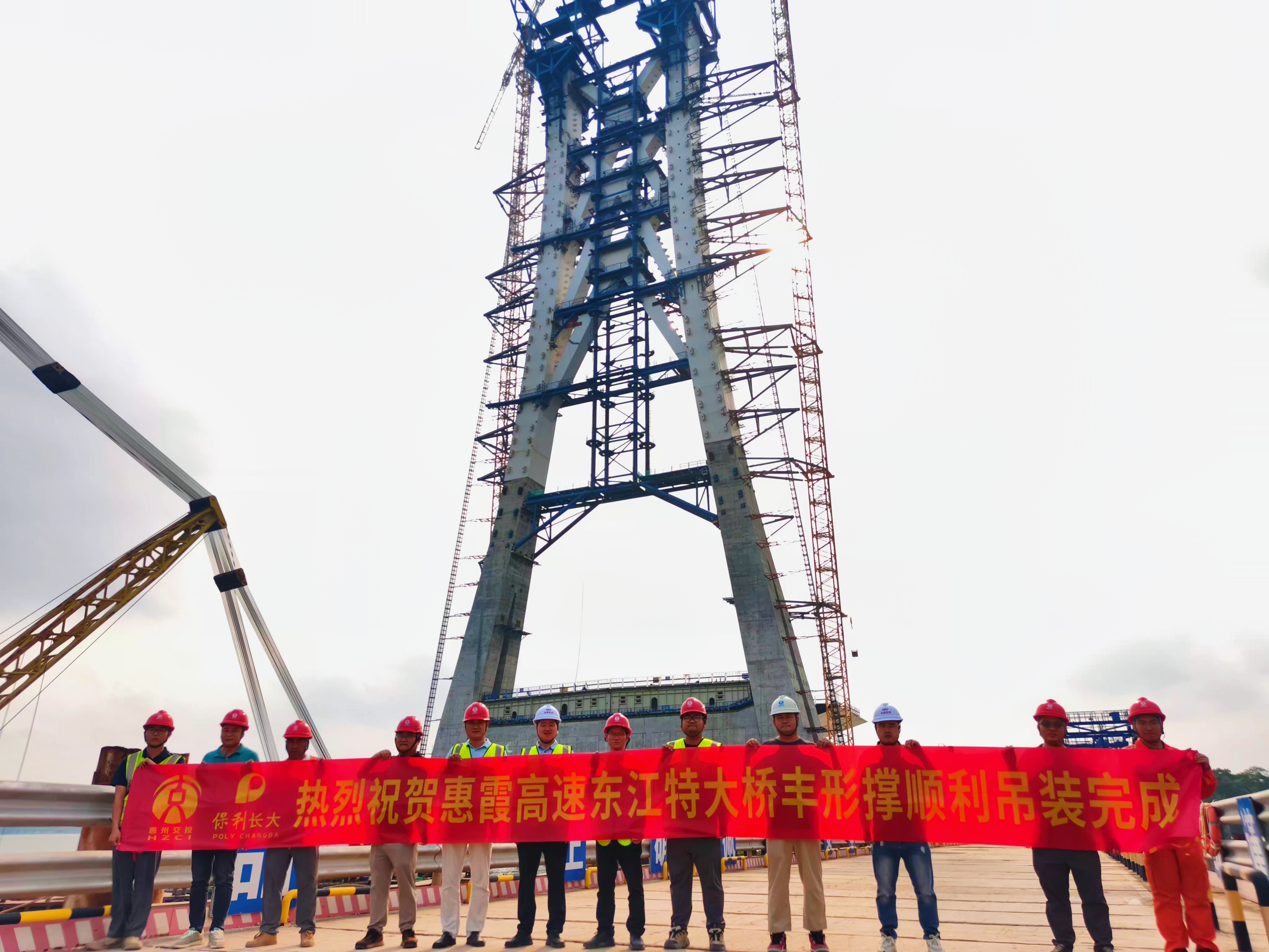 4月10日,h片 旗下中铁工业中铁山桥参建的惠州惠城至惠阳霞涌高速公路(简称惠霞高速)东江特大桥主塔塔柱主体施工完成。