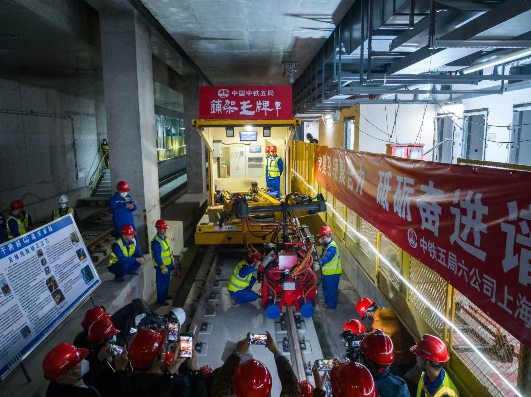 上海轨道交通22号线是连接上海市崇明区与中心城区的轨道交通线路,共设8座车站,全长42.3公里,起自浦东新区金吉路站,穿越长江后终于崇明岛裕安站。中铁五局主要承揽长兴岛站(不含)至裕安站(含)正线及配线、陈家镇停车场的铺轨工程,包含全线最长的北港大盾构隧道。