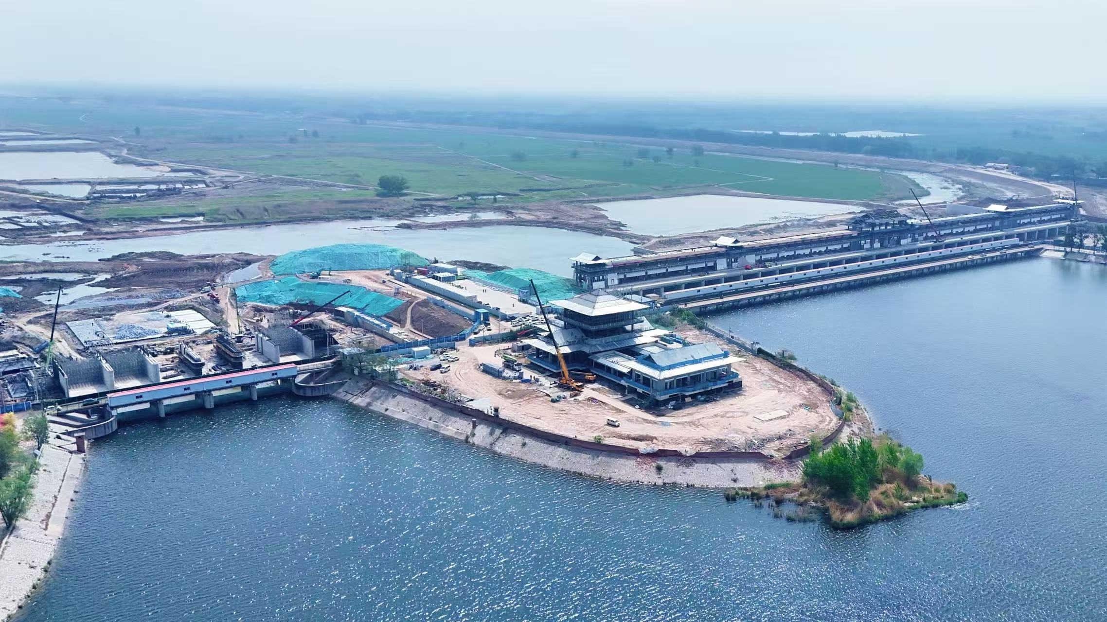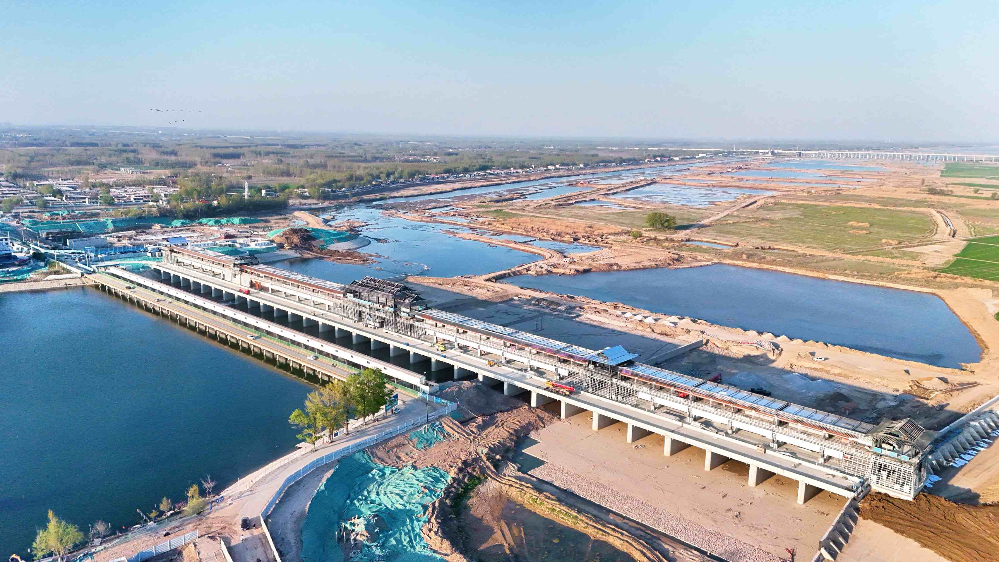 枣林庄水利枢纽改扩建工程位于河北雄安新区雄县枣林庄村南部,是白洋淀唯一的泄水控制性工程。项目建设内容为泄洪闸施工区域和节制闸施工区域,以及赵北口溢流堰加固、枢纽管理用房和水文设施改建、衔接段3公里堤防加固改建等。枣林庄枢纽原来的节制闸为4孔,改建后的节制闸扩充为6孔,单孔宽度由10米增加到12米,泄洪流量有效提升。