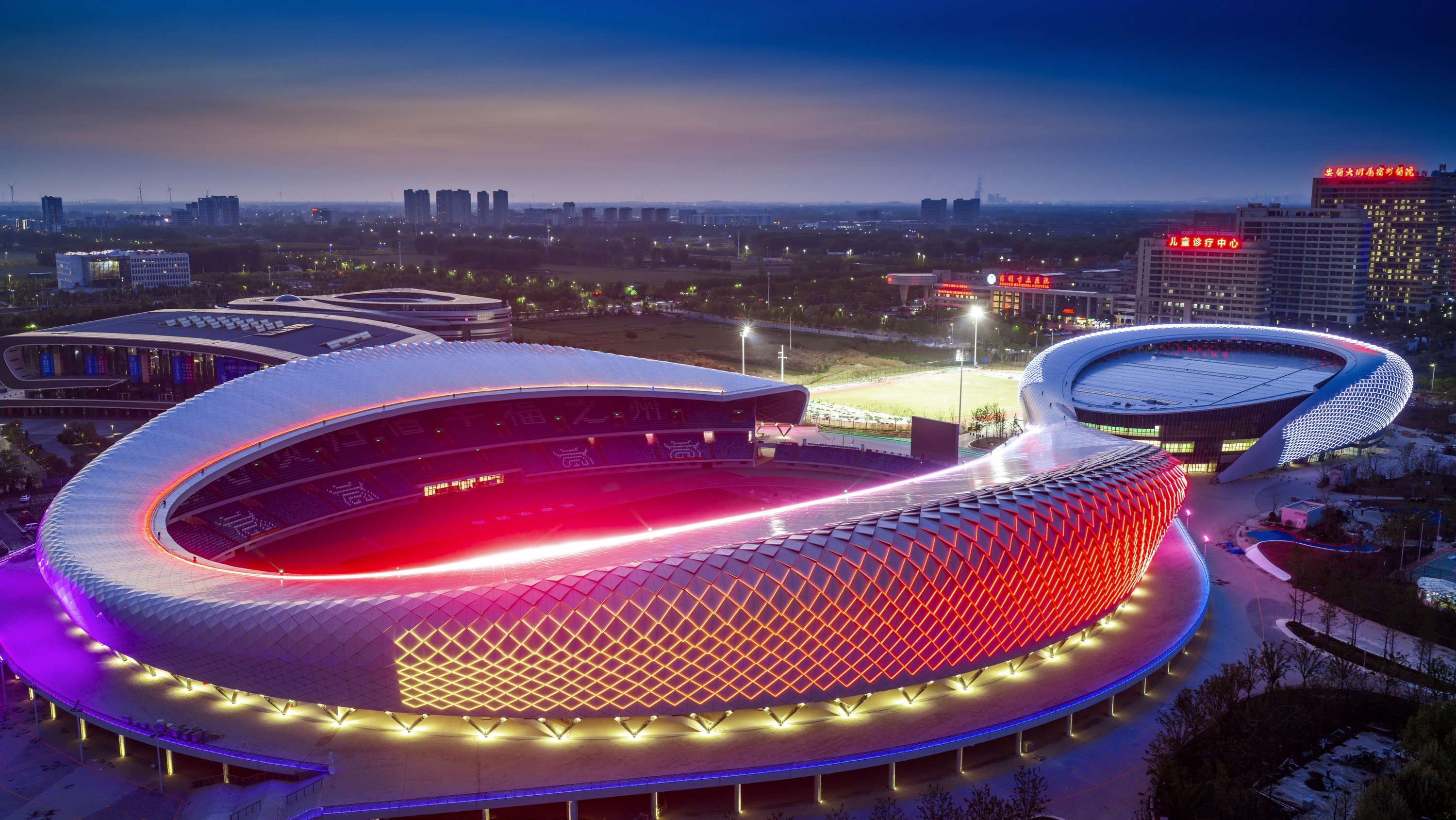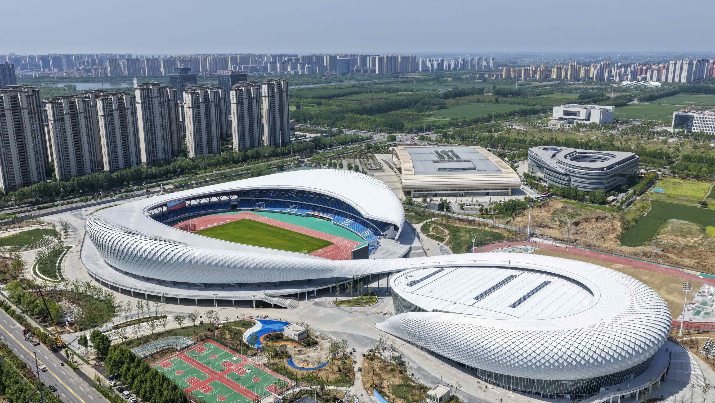 宿州奥体中心是2026年安徽省第十六届运动会、第九届省残运会、第十届省少数民族传统体育运动会的开(闭)幕式主会场,工程包括体育场、游泳馆、综合型全民健身中心及配套设施等,总建筑面积约8.96万平方米。其中体育场建筑面积约4万平方米,按照中型体育场规模建设,可容纳观众约3万人,具备举办地区性(省级比赛)和全国单项比赛条件。