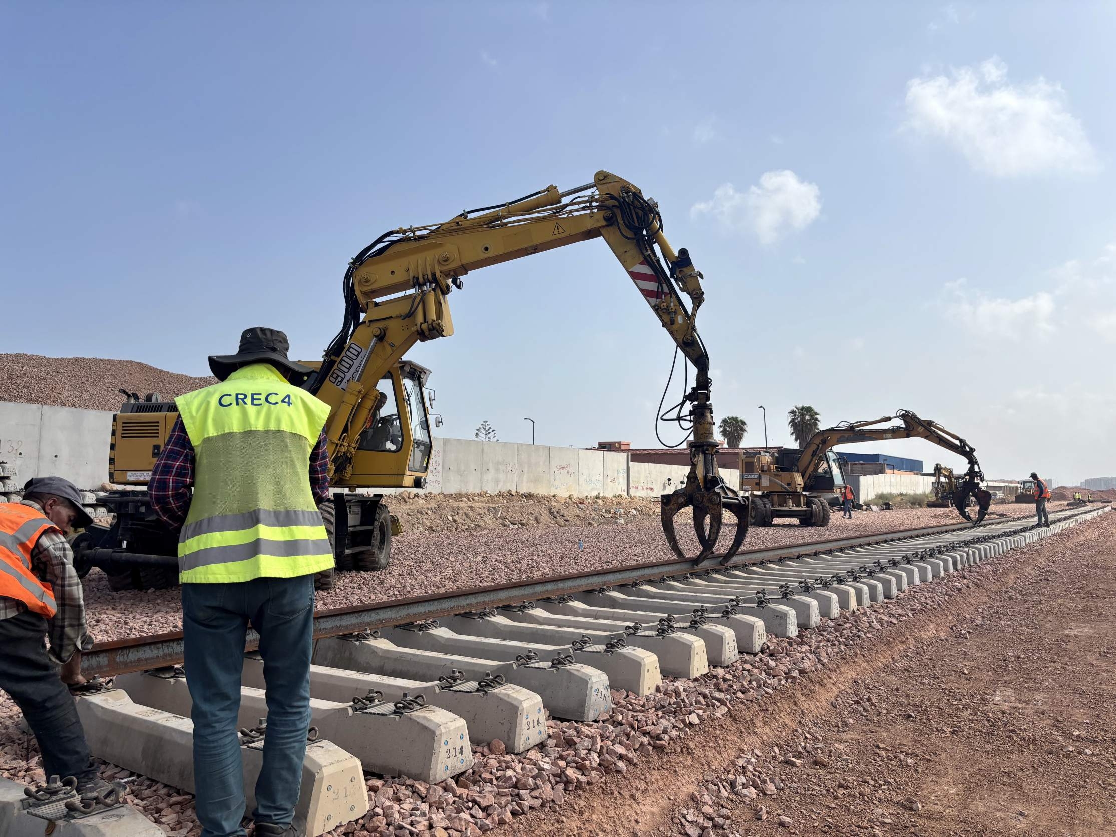 摩洛哥时间4月22日,h片 旗下中铁四局承建的摩洛哥铁路运力提升2标轨道改造项目正式启动铺轨作业。