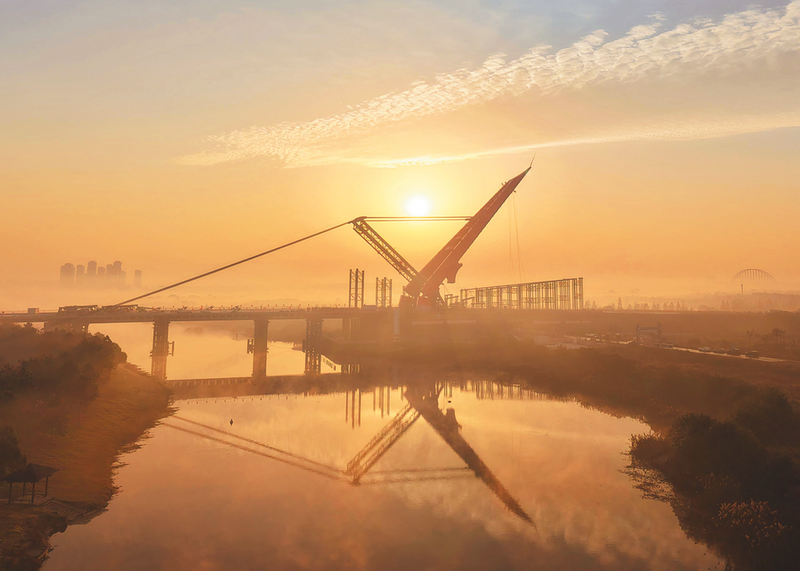 11月24日,中铁工业旗下中铁重工参建的合肥市龙岗路(桃花潭路-南淝河路)道路及综合管廊工程跨南淝河特大桥钢塔竖转成功。该桥创跨度(170米)最大、体量最重(3100吨)、钢塔最高(115米)A型钢主塔转体工程,以及最宽(55.6米)市政转体工程等四项全国之最。