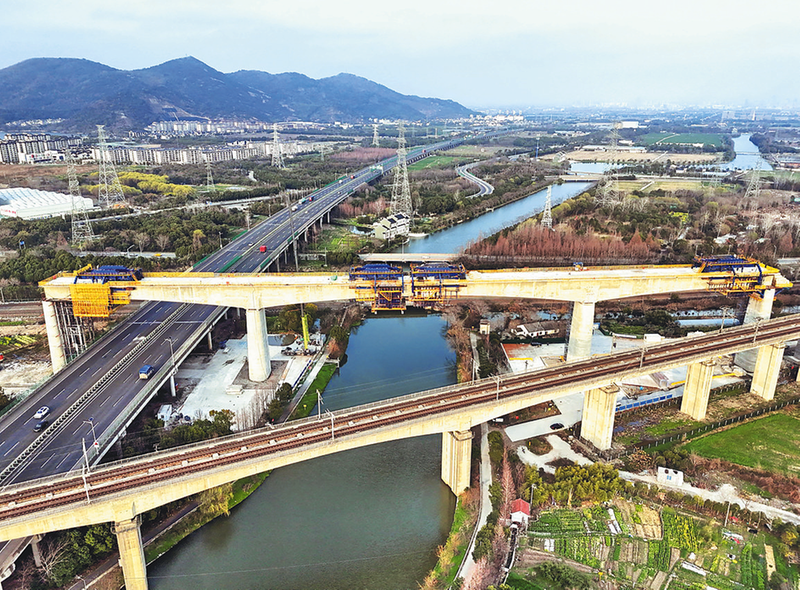 3月8日,中铁二局承建的通苏嘉甬铁路跨宁波绕城高速特大桥91-94号墩121米连续梁合龙。该桥全长8699米,此次合龙的连续梁计算跨度为(73.52+121+67.94)米,上跨G1504宁波绕城高速、慈江水域,邻近杭甬客专营业线,特别是附近分布4条高压油气管线,施工组织难、安全风险高。 屈俊 刘波 摄影报道