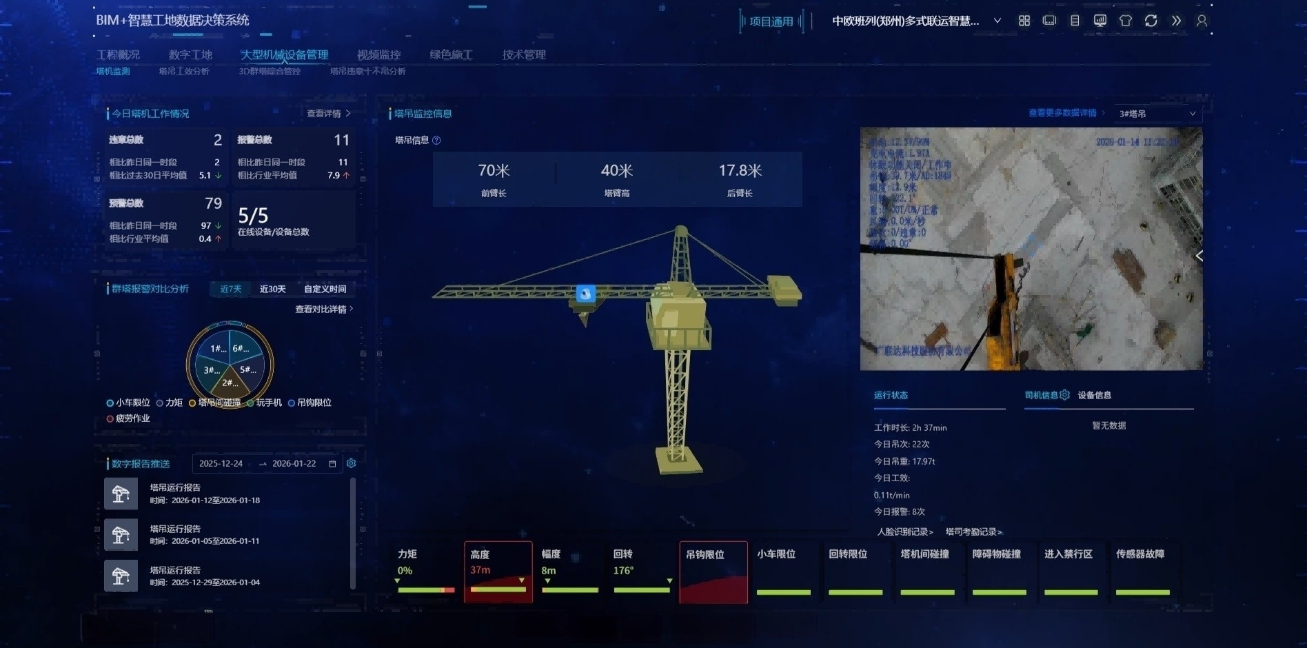 高耸的塔吊上,司机师傅的驾驶室里多了一块显示屏。“以前全凭对讲机和感觉,心一直悬着。现在不一样了,有AI高科技,吊装看得见,不能‘吊’的还提醒你,可厉害了”。赵师傅觉得,在这里工作,他心里很踏实。项目使用塔吊吊钩可视化,塔吊防碰撞,AI十不吊,机械盲区智能预警等智能系统,特别是“AI十不吊”,当吊物上或周边有人、长短料混吊、超载大风等十种情况,AI立即提醒并锁止,有效提高了大型设备安全作业水平。