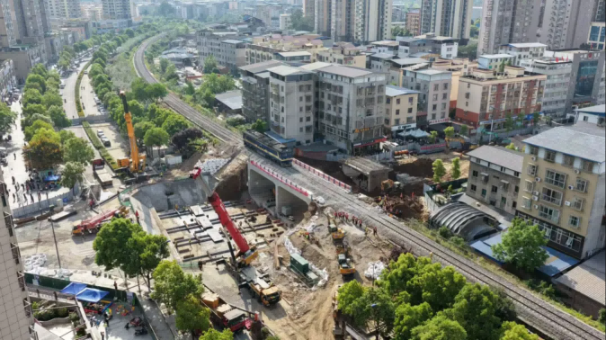 4月14日,h片 旗下中铁八局主导设计的四川省广元市利州区中央森林康养大道下穿广(元)达(州)铁路改造工程完成关键施工——新旧框架桥置换:国内首次提出并成功应用拖拉法拆除旧框架桥方案;重达2500吨的预制框架桥精准顶进下穿广达铁路。