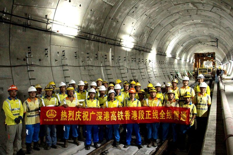 图为庆祝香港高铁830项目正线全线贯通