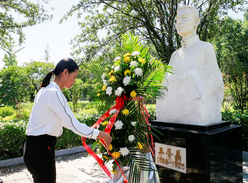 中铁工业团员青年在王尽美塑像前开展爱国主义教育