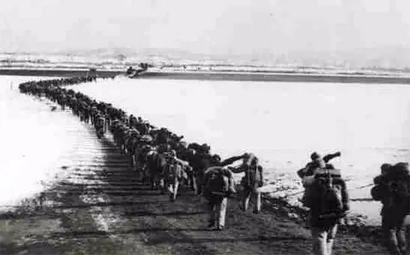 “那时候,老美(美军)天天炸江上的大桥(鸭绿江断桥),炸狠了修不过来。我们就在水下搭了浮桥,桥顶上有水,白天飞机过去的时候看不着(桥),等到了晚上,就赶紧从桥上把货(物资)给运过去!”
