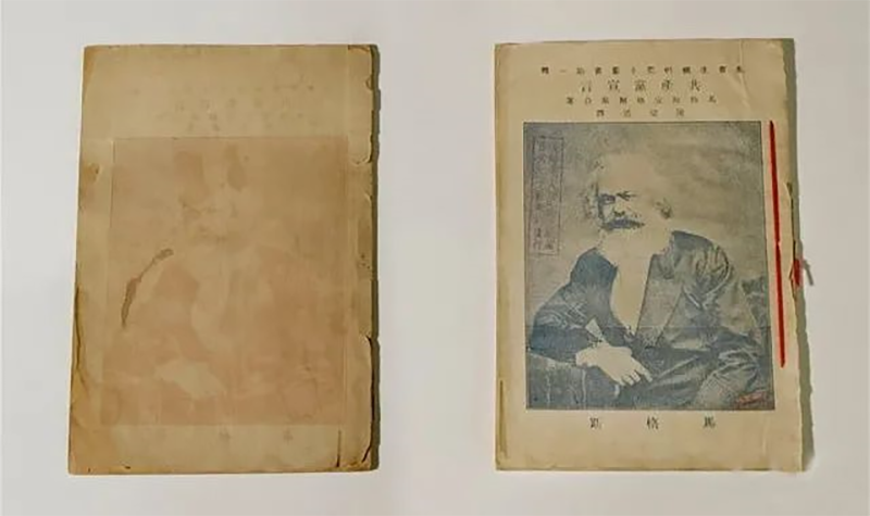 2020年6月23日新华社记者在中共一大会址纪念馆拍摄的1920年8月(左)和9月出版的《共产党宣言》中文全译本。