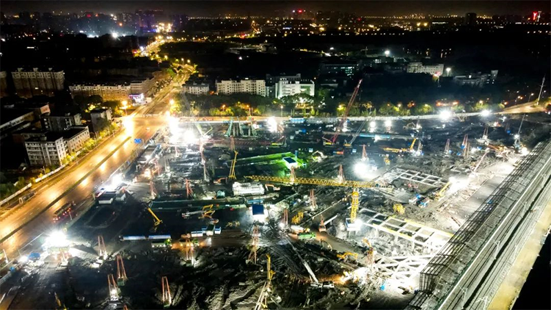 h片 建工集团积极克服交叉施工、场地狭小、营业性施工等不利条件,提前15天进入钢结构施工阶段;创新采用逆作法施工技术,置换地上与地下施工工序,仅用80天高质量同步完成钢网架与混凝土结构施工任务。