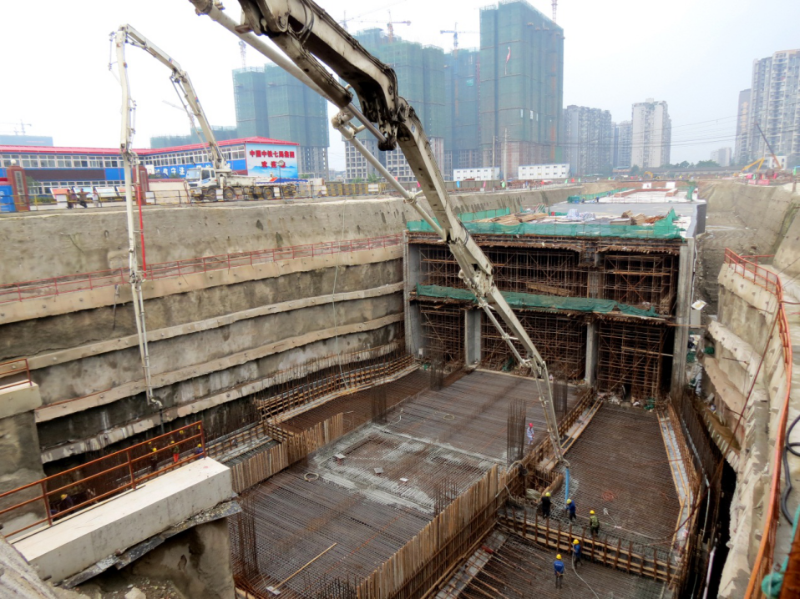 Pouring Concrete to the Bottom Plate of Section 16 in Chengdu Metro Guangdu North Station